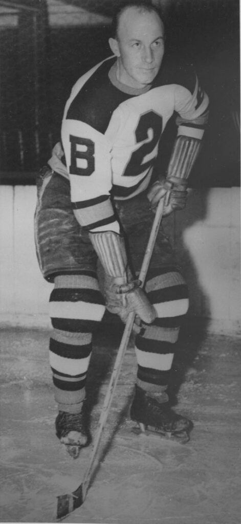 . . . for sheer power and irresistible force, Eddie Shore stands alone. In his good days with the Boston Bruins, Eddie combined skating skill with brute force, to fairly bull his way through the opposition. The Maple Leafs always detailed two men to cope with Shore’s rushes. They would turn and skate with him in an endeavour to get him on his wrong side. Eddie had no backhand shot to speak of. He was certainly a colourful player, as good a defenceman as ever lived; what’s more, he dedicated his whole life to the good of hockey.