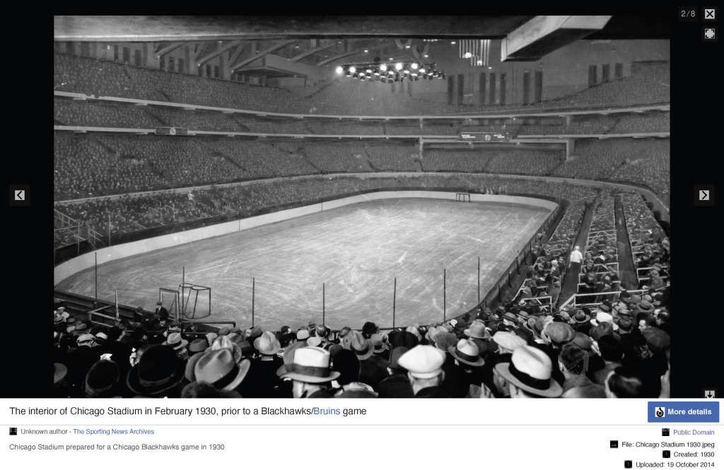 If such a rink ever hosted an NHL game, it would never have been the Madhouse on Madison, either in the 1930s or later. Indeed, the Stadium’s hockey crowds were unique, and memorialized by poet Tom Clark (Clark, Tom; “Chicago” in At Malibu; quoted in Bowering, George; The Hockey Scribbler, ECW Press (Toronto:2016), at p.13. More than pennies and eggs regularly found their way to the ice surface: