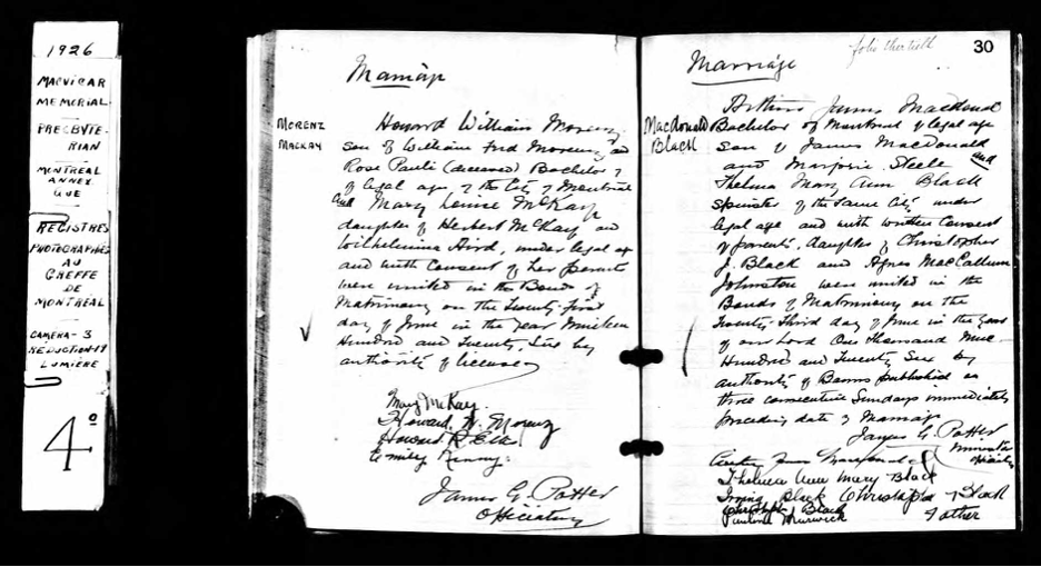 It was a familiar rhythm. Just as the June 21 Morenz wedding anniversary marked the beginning of summer, each summer came to an end exactly three months later, on Howie’s September 21 birthday. Several incorrect sources identify Howie’s birthday as June 21, 1902, including several Canadian Press articles. The September 21, 1902, birthdate is taken as authoritative because, in addition to other reasons, it appears on his tombstone, and wasconfirmed in an interview withMark T. McNeil in “From a Rink-Side Seatâ€, Montreal Gazette, January 25, 1935, p.12, c.4 – 5. June 21 was actually his wedding day: Registry of MacVicar Memorial Presbyterian, Montreal Annex, Quebec, June 21, 1926.